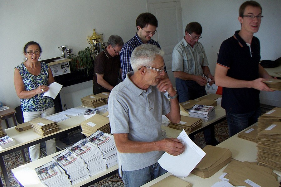 Mise sous pli des Annales 2013-2014 avec quelques bénévoles de l'AmicaleJeudi 25 septembre, une poignée de volontaires du Conseil d’Administration de l’Amicale se sont retrouvés dans l’ancien pavillon administratif du site Germain, afin de procéder à la mise sous pli des quelques 1400 livrets !